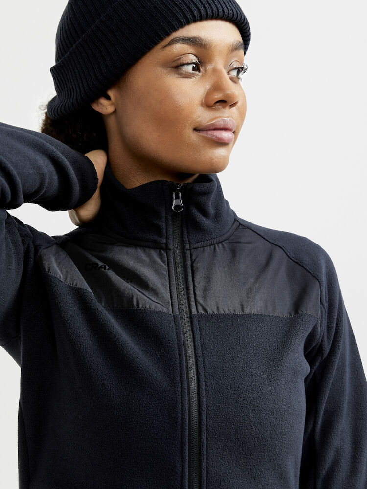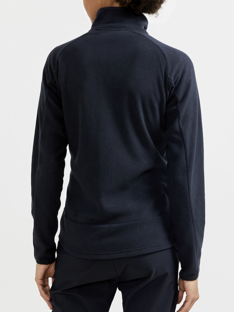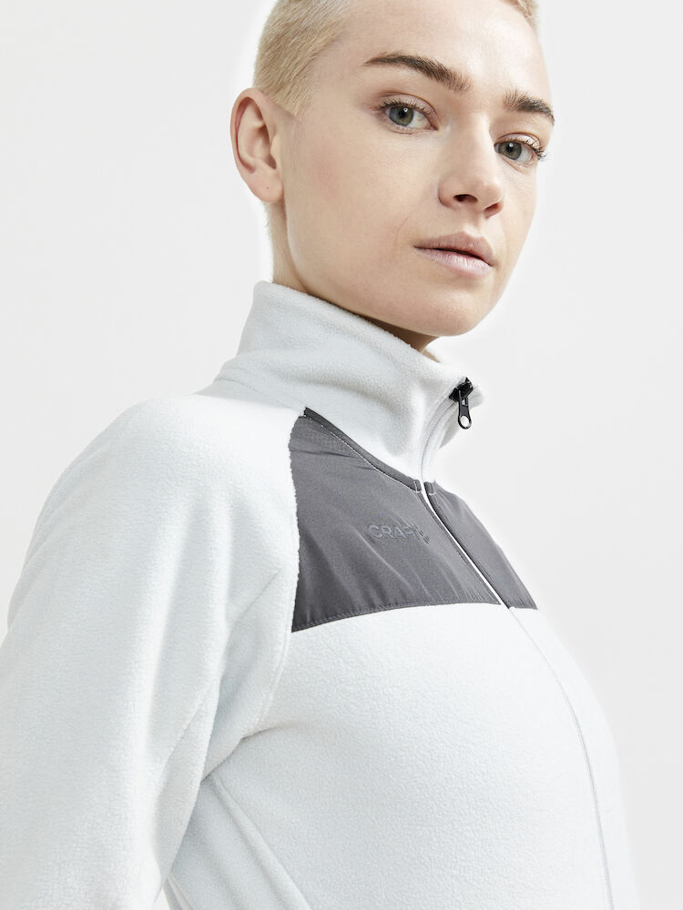 Avansert mellomlagsjakke til dame i myk, børstet fleece med atletisk snitt som passer like godt til friluftsaktiviteter som til hverdagsbruk. • Myk, børstet fleece. • Sidelommer med glidelås. • Craft-logo på brystet. • Regular fit.