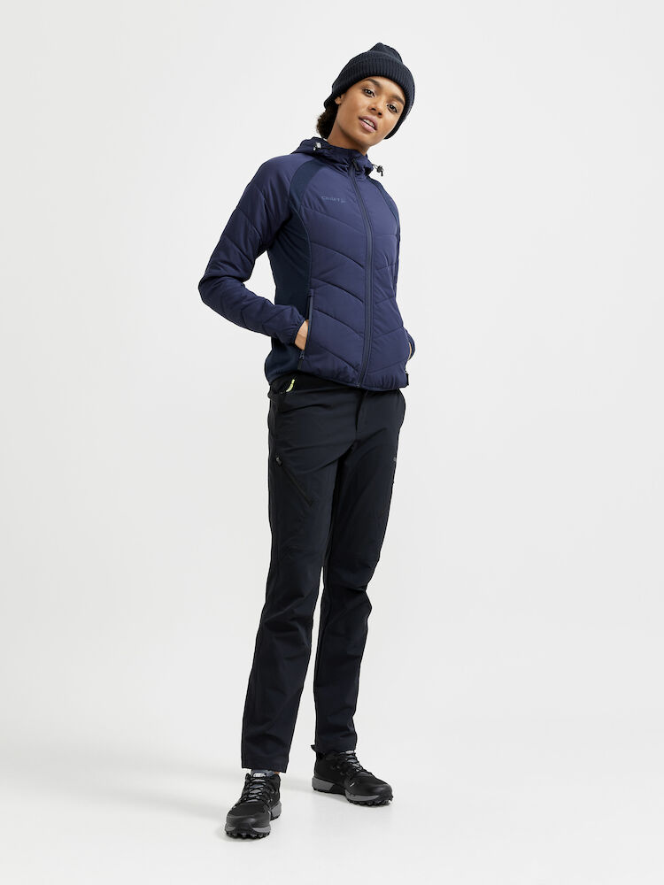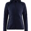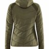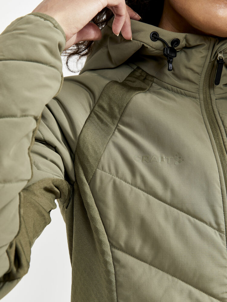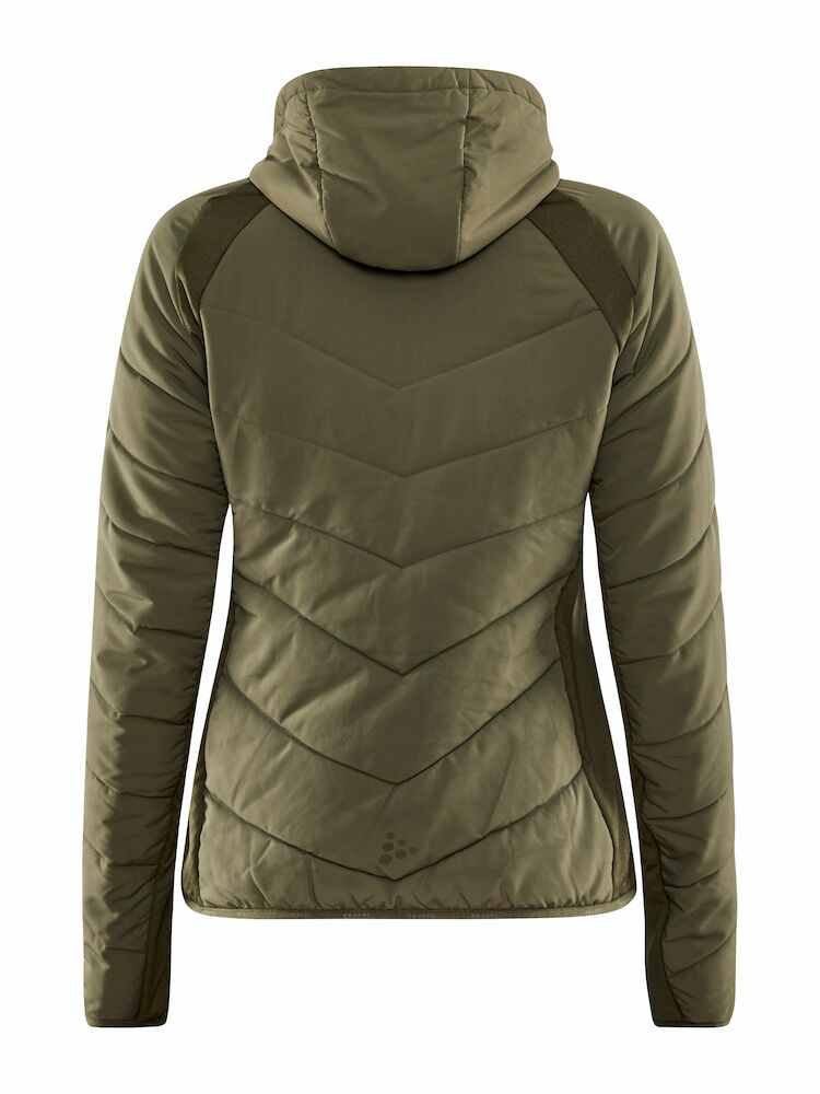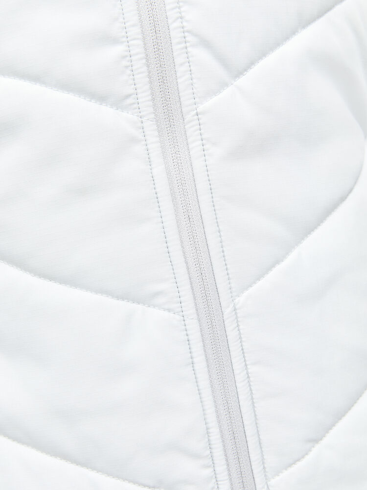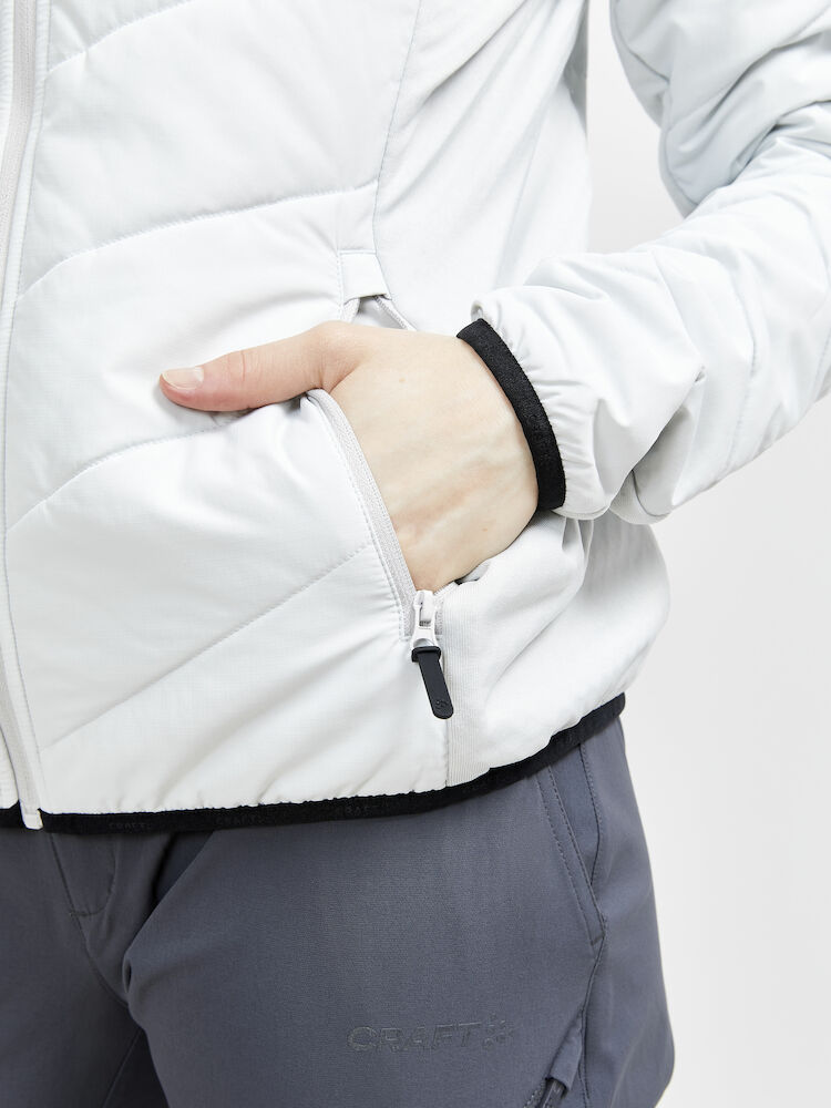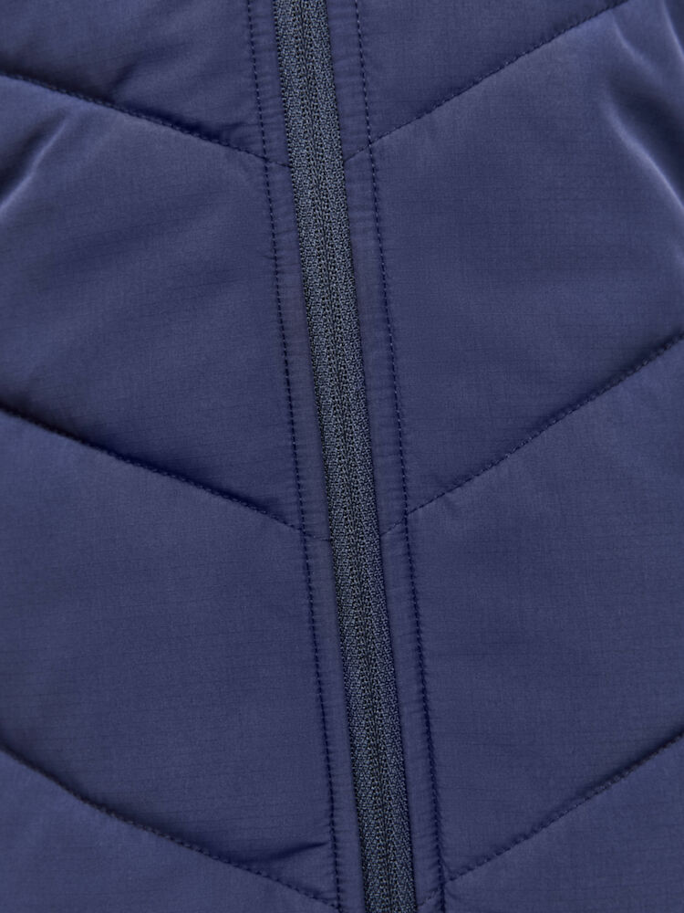 Lett vattert damejakke med myke sidepaneler i jersey for økt bevegelsesfrihet og ventilasjon. Jakken fungerer perfekt som en ytterjakke ved milde temperaturer, eller som et mellomlag under en skalljakke i kalde temperaturer. • Lett polstret kropp, ermer og hette. • Myk jersey i sidepanelene og under ermet for bedre bevegelse. • To sidelommer med glidelås. • Justerbar hette. • To åpne innerlommer. • Craft-logo på høyre bryst. • Six-dot logo på rygg.