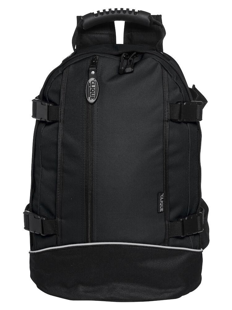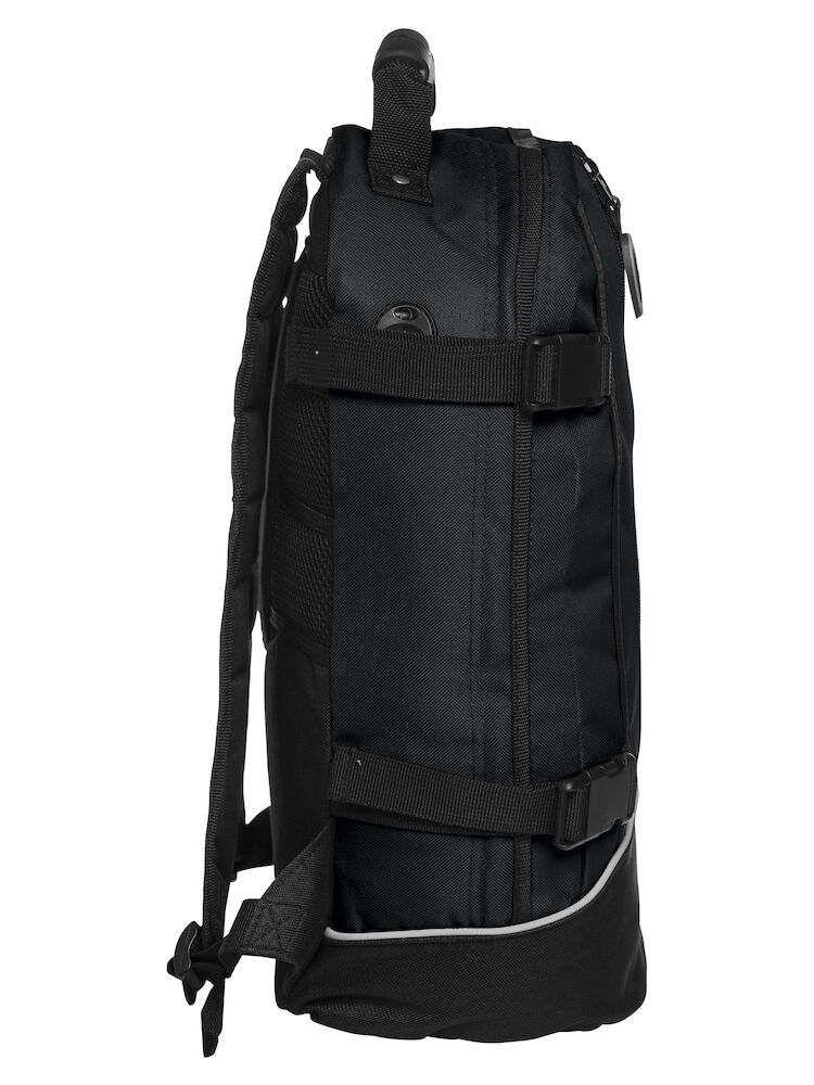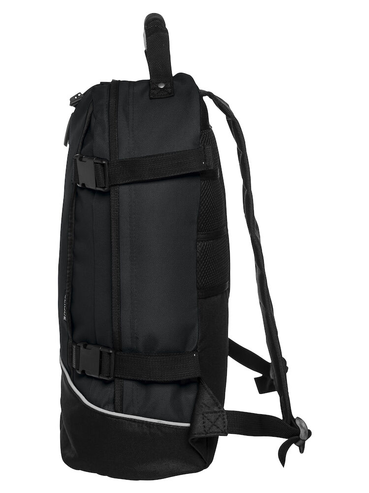 Praktisk ryggsekk som rommer det viktigste til sportslige aktiviteter. Regulerbare stropper på sidene og refleksbånd på utsiden. Lomme med synlig glidelås i front. Kraftig håndtak i gummiert materiale. Flere innvendige lommer med plass til småting og mobiltelefon. Vattert bakside slik at man har god komfort mot ryggen. Regulerbare og vatterte bæreremmer.46x28x13cm ≈ 16 l.