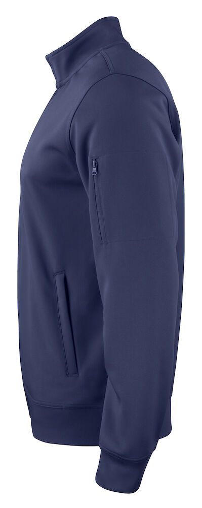 Cardigan med ton-i-ton glidelås. To sidelommer og lomme med glidelås på ermet. Herringbone nakkebånd og ribb i nederkant og ermavslutning. Tilpasset for hodetelefoner. Spun dyed. Avtagbar etikett i nakken.