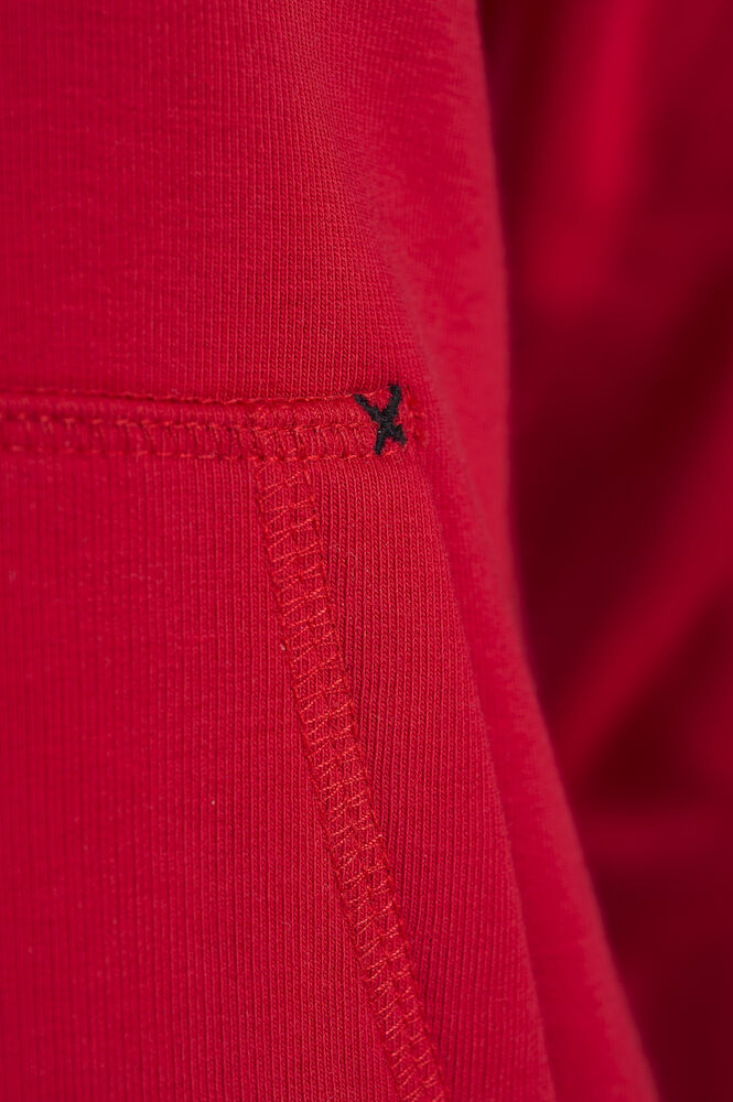 Hettegenser med kengurulomme med praktisk løsning for mobiltelefon. Kontrasterende mesh i hette. 2×2 ribb med stretch i nederkant og i ermavslutning. Ton-i-ton flatlocksømmer.