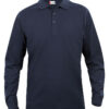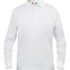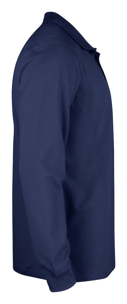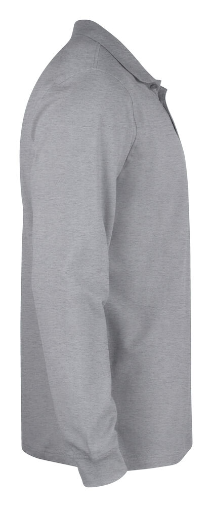 Klassisk langermet pique til herre. Knappestolpe med tre ton-i-ton knapper. Ribb i ermavslutning. Splitt i sidene.
