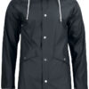En klassisk regnjakke med trykknapper av metall. Justerbar hette med brem. To lommer med klaff i front. Gropventiler i metall, tapede sømmer.Jakken kan transfer-trykkes.