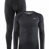 Core Wool Merino Set består av en langermet undertrøye og lang bukse i en myk merinoull- og polyesterblanding som holder deg tørr og varm hele dagen.Kombinasjonen av mulesing-fri merinoull og funksjonell polyester gir effektiv temperaturkontroll til aktiviteter med lav til middels intensitet. Materialets fine fibre gir også høy komfort mot huden. Et perfekt valg for slalåm, fotturer, jakt og lignende aktiviteter.• Varm og funksjonell blanding av merinoull og polyester• Varmer selv når det er vått• Ergonomisk passform• Naturlig fresh• Mulesing-fri ull• Normal passform• Fukttransport: 2 av 5• Aktivitetsnivå: 2 av 5• Temperatur: -15 ºC til -5 ºC