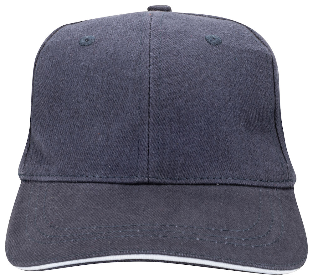 Caps til barn med "sandwitch" kontraststripe på skjermkanten og justerbare bånd med messingspenne.