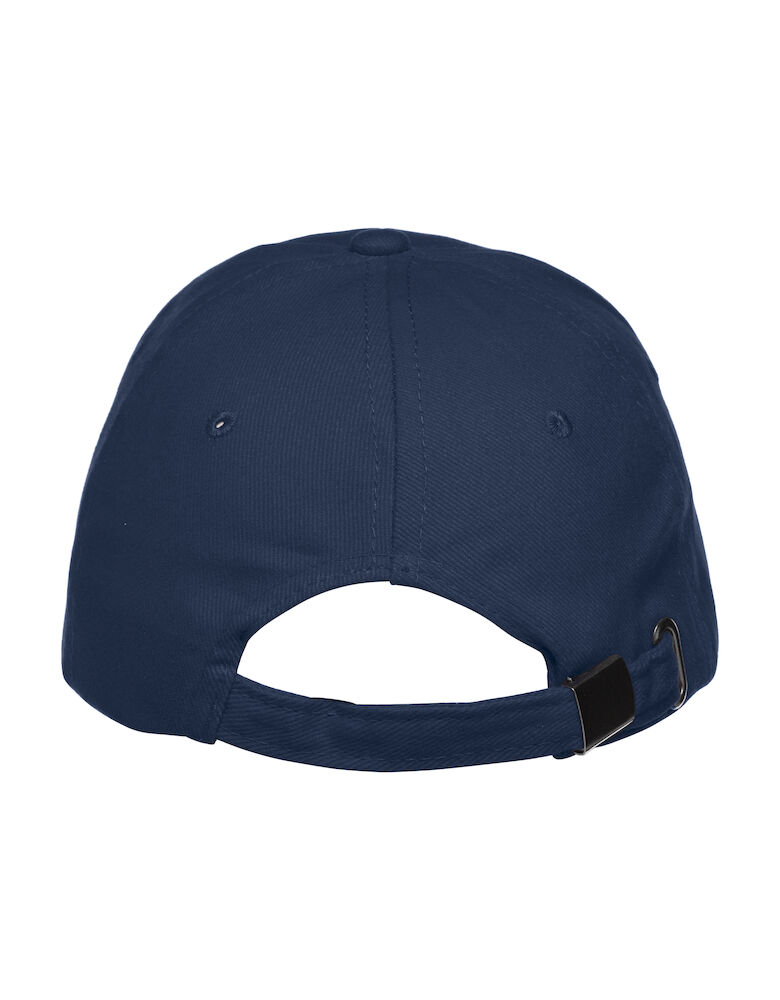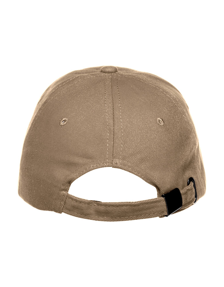 Caps med seks paneler og med tynn kontraststripe på bremmen. Justerbare bånd med messingspenne.