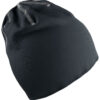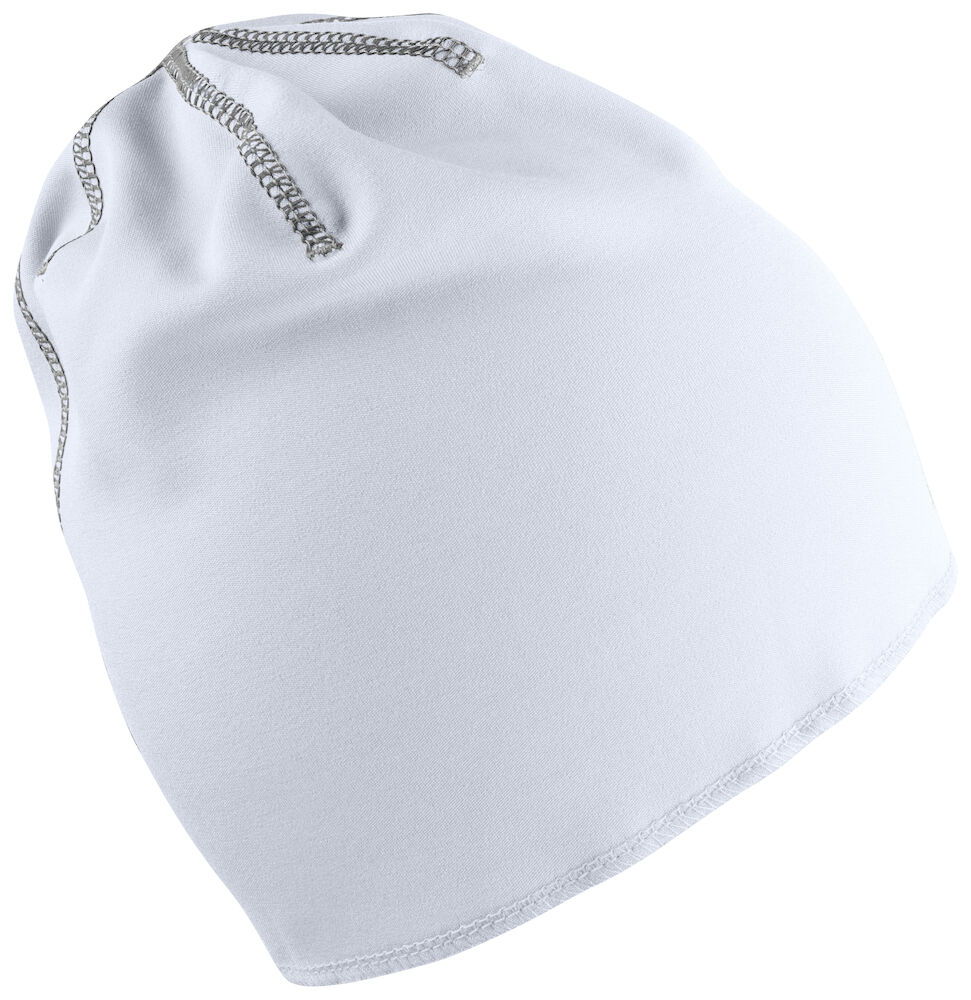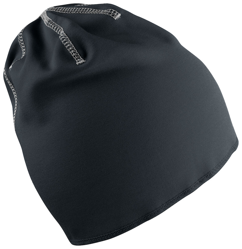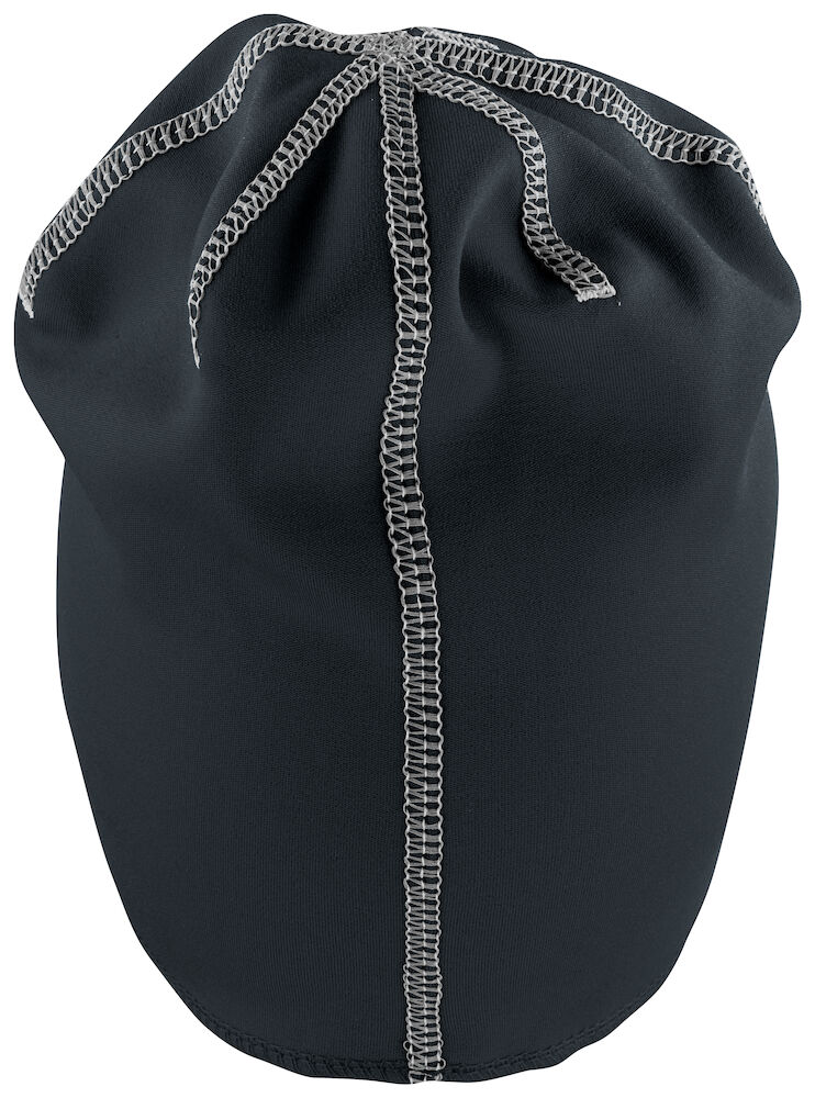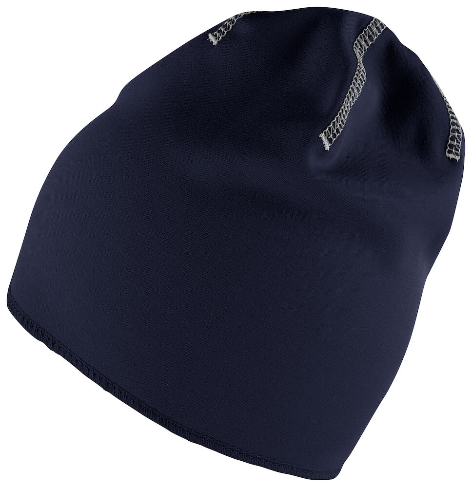 Lue i elastisk fleece. 6 flatlock reflekterende sømmer.