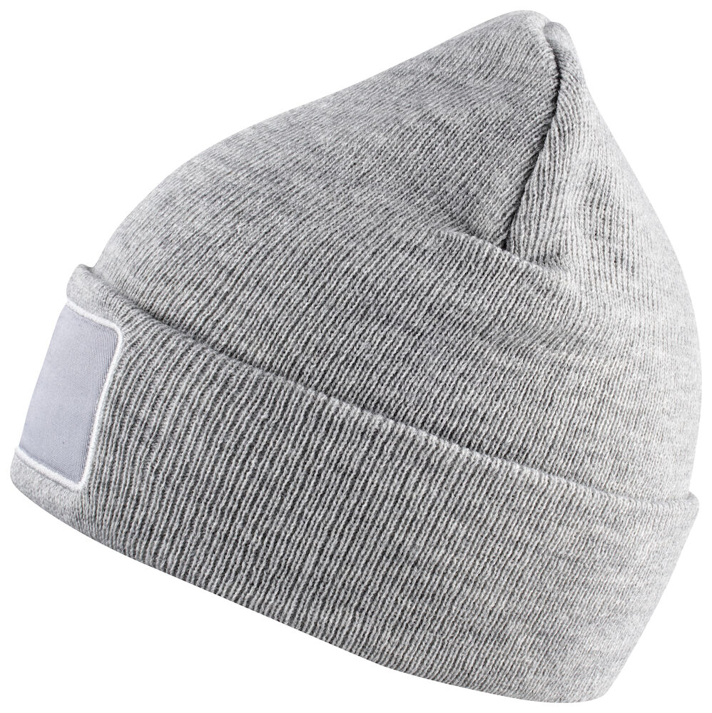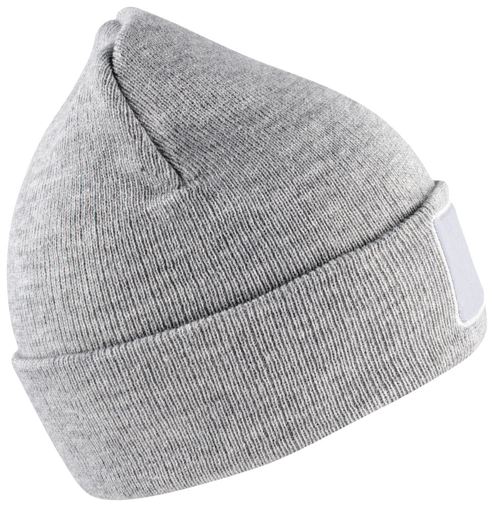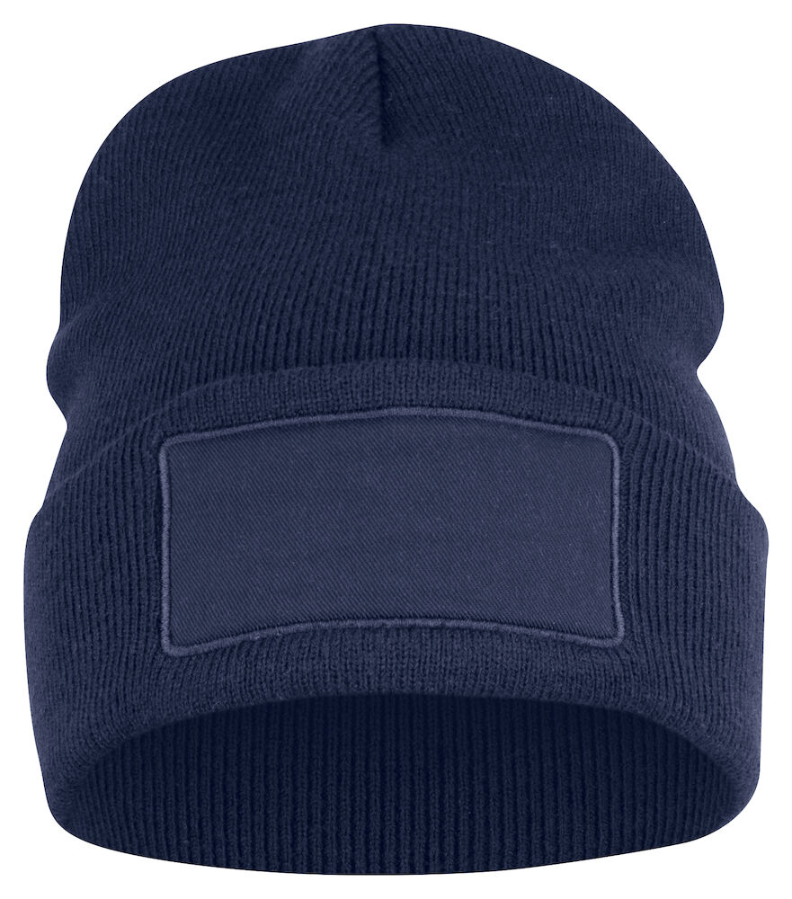 Strikket lue med oppbrett, med felt til å trykke på.Patch i front til logotrykk: 9,5 x 4,5 cm.