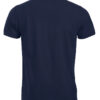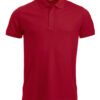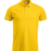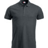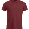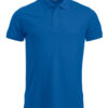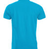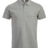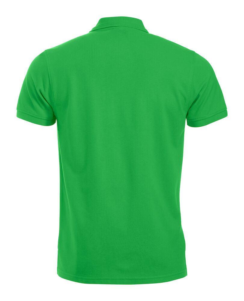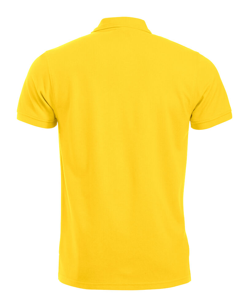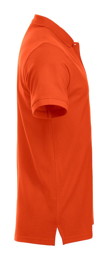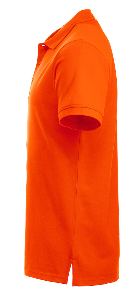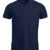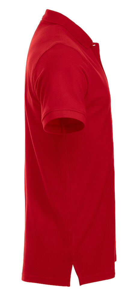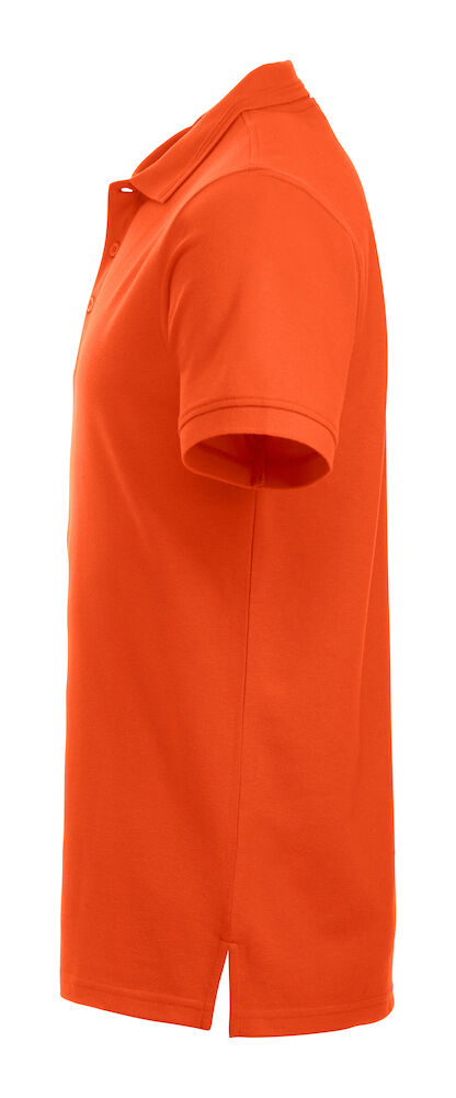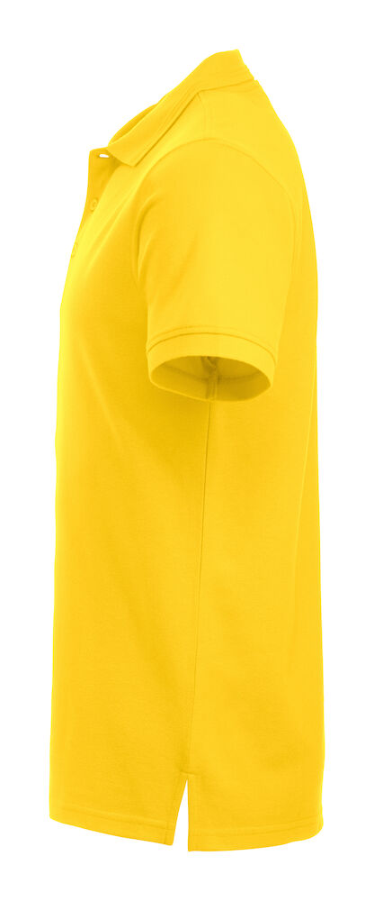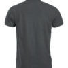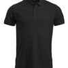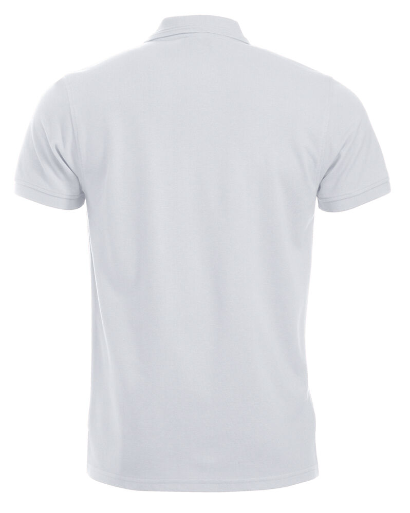 Pique med to jaquardstriper på kragen. Knappestolpe med tre knapper som går ton-i-ton og splitt i sidene.