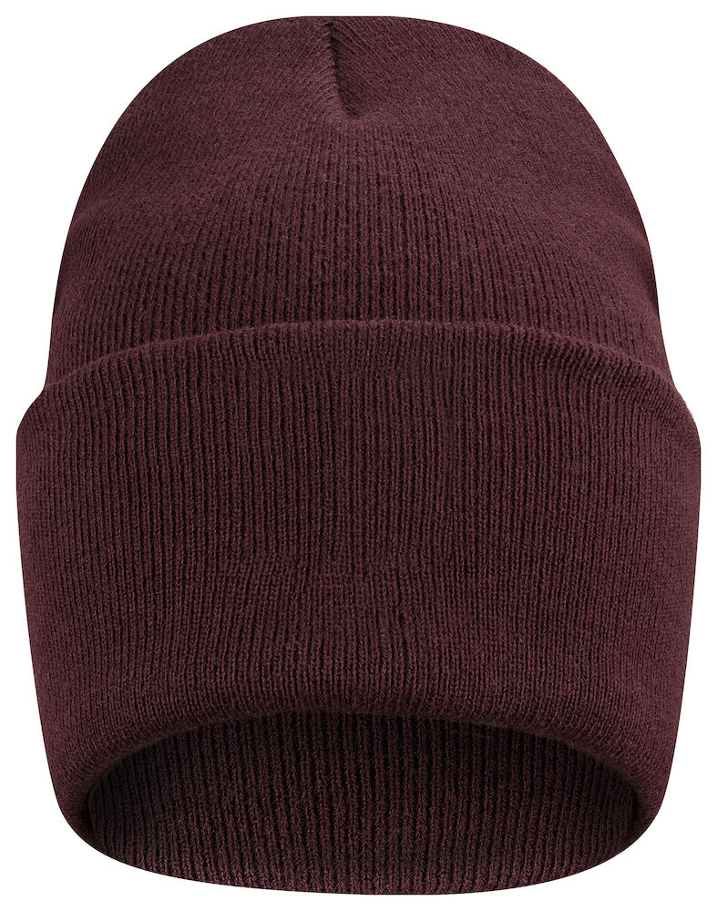 Dobbeltstrikket lue i akryl, med oppbrett og 4 sømmer øverst.