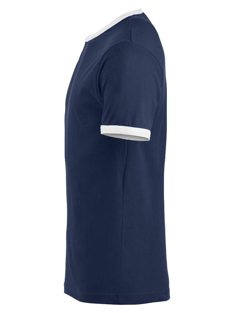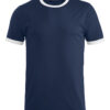 Moderne t-shirt med noe smalere passform, kontrastfarge i hals og ermer. Teipet krage med elastan.