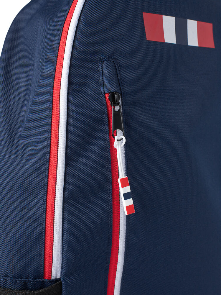 Lett og fin ryggsekk med et stort hovedrom. Vattert lomme til PC. Glidelåslomme i front og mesh lommer på begge sider til små ting man trenger rask tilgang til. En lomme bak for sikkerhetslagring. TPU glidelåser og reflekterende zip pullers. Mål: 29,5×45,5×12 cm ≈ 16 liter.