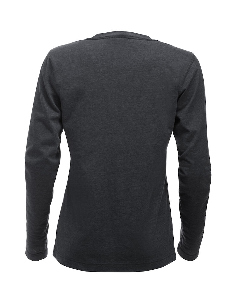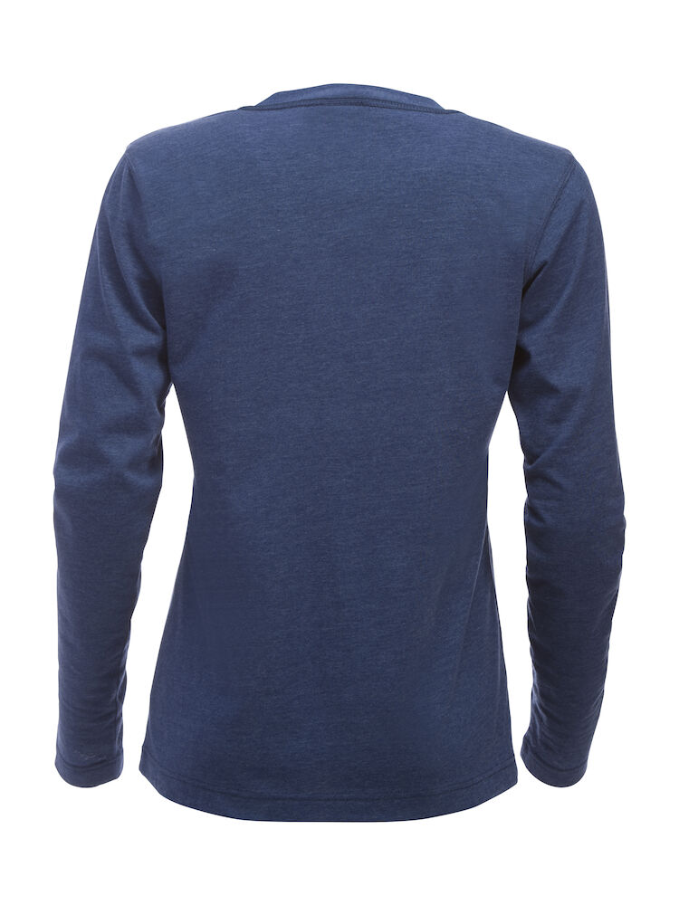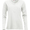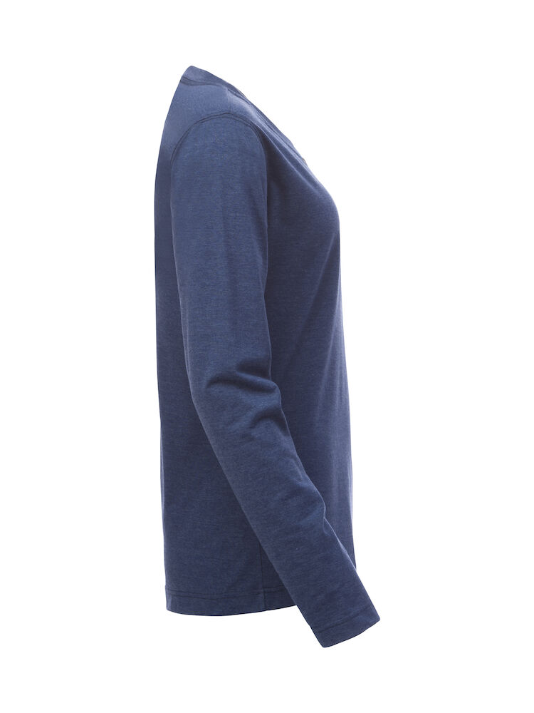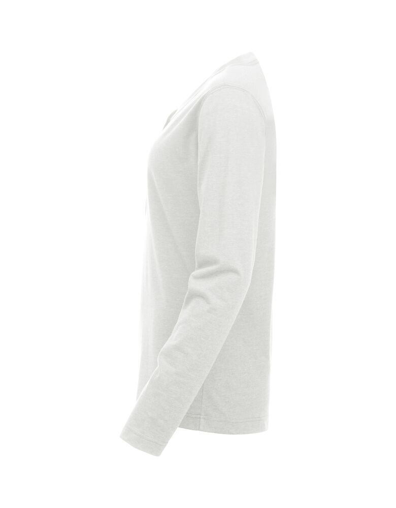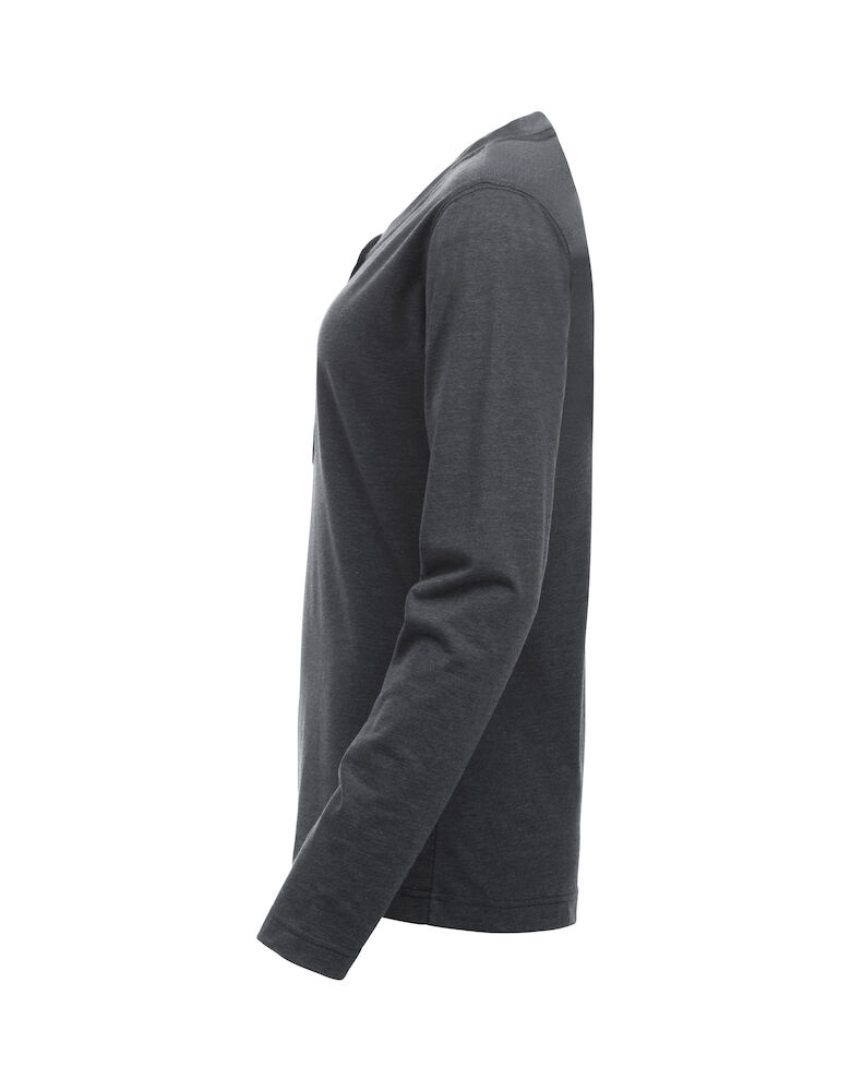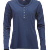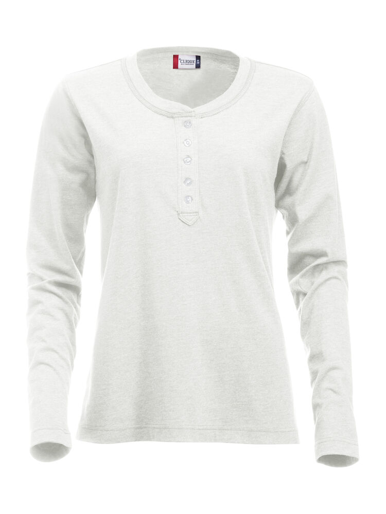 Langermet T-shirt, knappestolpe med 4 knapper på herremodellen og 5 på dame.