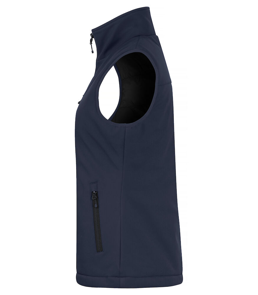 Padded Softshell Vest er en vattert softshellvest med tre ytterlommer med reverserte SBS-glidelåser, én innerlomme, broderingslomme og svart fôr.