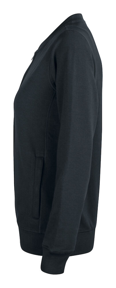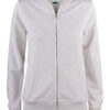 Vår fineste full zip cardigan til dame i en økologisk bomull og resirkulert polyesterblanding. To lommer i front med YKK – glidelås. Dekorative flatlocksømmer for et moderne utseende. CVC french terry, herringbone nakkebånd og ribb i nedekant og ermavslutning. Elastisk ribb i 1×1. Tilpasset for hodetelefoner.