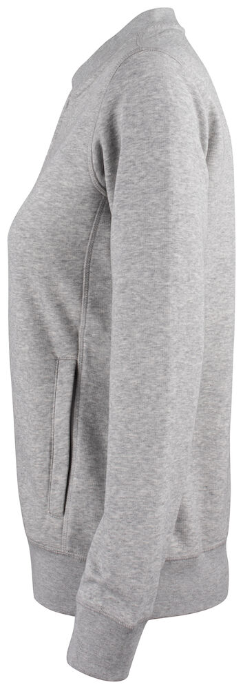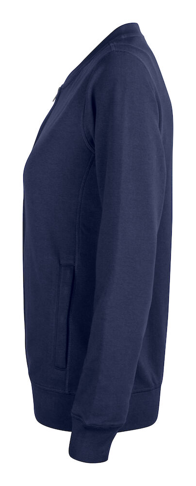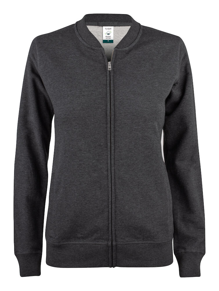 Vår fineste full zip cardigan til dame i en økologisk bomull og resirkulert polyesterblanding. To lommer i front med YKK - glidelås. Dekorative flatlocksømmer for et moderne utseende. CVC french terry, herringbone nakkebånd og ribb i nedekant og ermavslutning. Elastisk ribb i 1x1. Tilpasset for hodetelefoner.