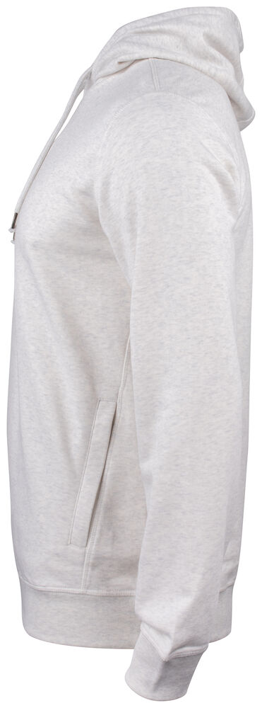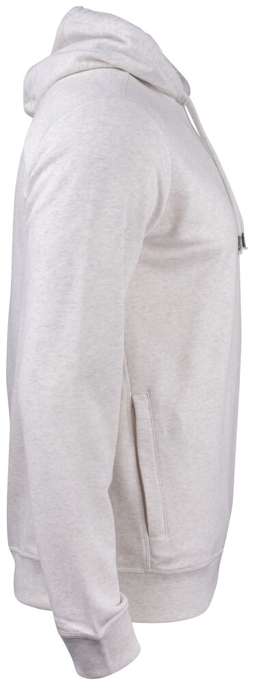 Vår fineste hettegenser i en økologisk bomull og resirkulert polyesterblanding. To lommer i front med YKK-glidelås. Snor i hette med metallavslutning og dekorative flatlocksømmer som gir et moderne utseende. CVC french terry, herringbone nakkebånd og ribb i nedekant og ermavslutning. Elastisk ribb i 1x1. Tilpasset for hodetelefoner.
