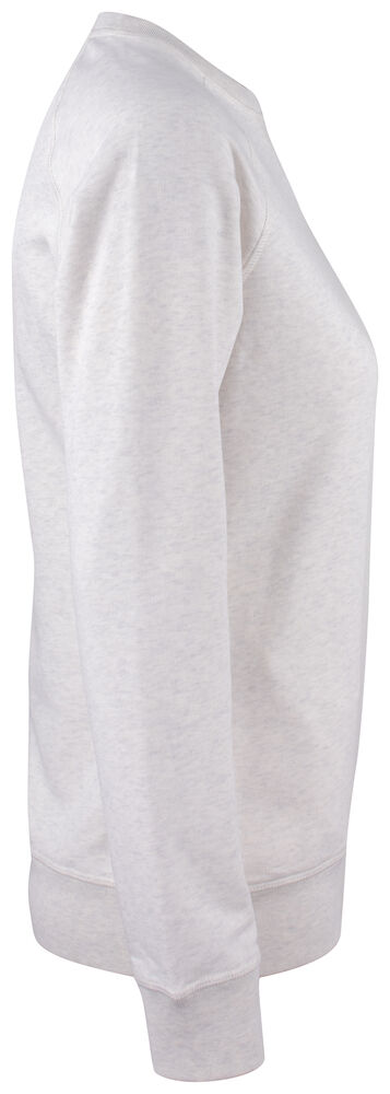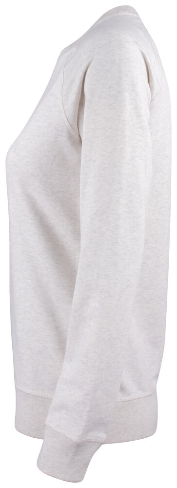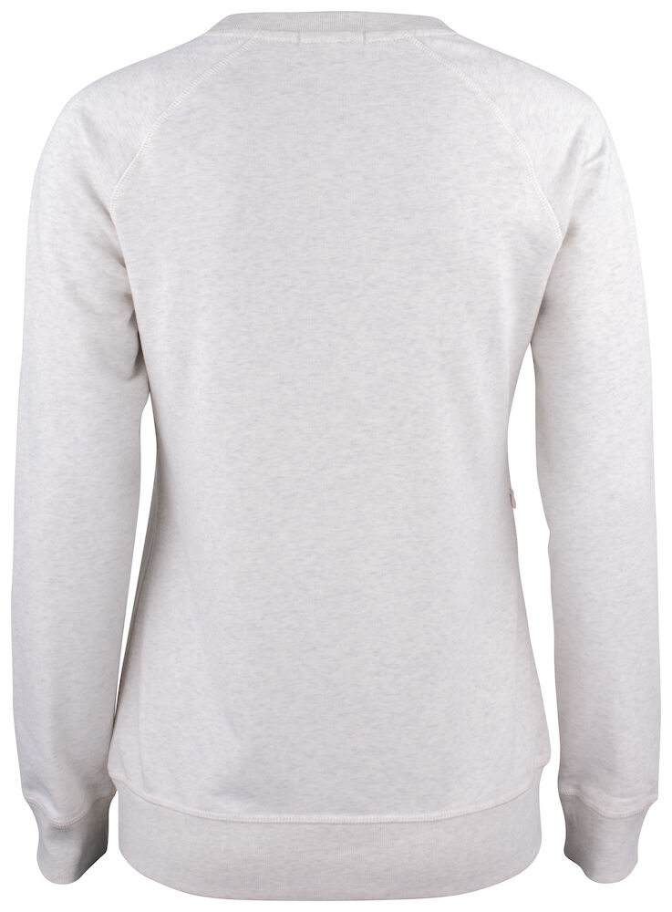 Vår fineste sweatshirt til dame i en økologisk bomull og resirkulert polyesterblanding. Dekorativ ermavslutning og nedekant med raglansøm for et moderne utseende. Skjult sidelomme med glidelås. CVC french terry, herringbone nakkebånd og ribb i nedekant og ermavslutning. Elastisk ribb i 1x1. Tilpasset for hodetelefoner.
