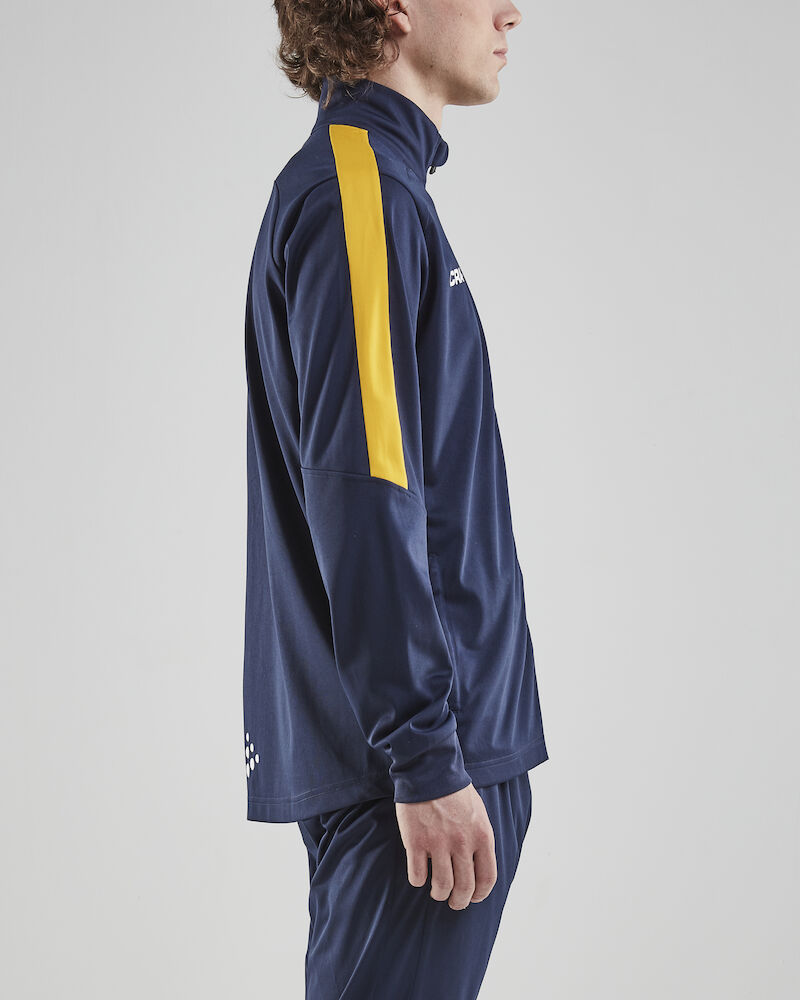 Trening - og oppvarmingsjakke produsert av funksjonelt materiale for optimal fukttransport. Myk og komfortabel å ha på og fungerer som en teamjakke. Strategisk plaserte meshpaneler girt god ventilasjon. Sidelommer med glidelås. Utgående modell.
