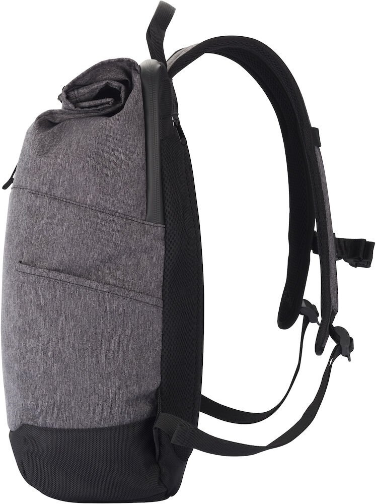 Moderne ryggsekk med "roll up" funksjon for å øke volumet ved behov. Separat lomme til 15" pc. Sikkerhetslomme bak og skjult lomme i bunnen. To lommer på siden. TPU glidelås, reflekterende zip pullers og innvendig nøkkelkrok. Mål: 29x42x15 cm ≈ 18 liter.